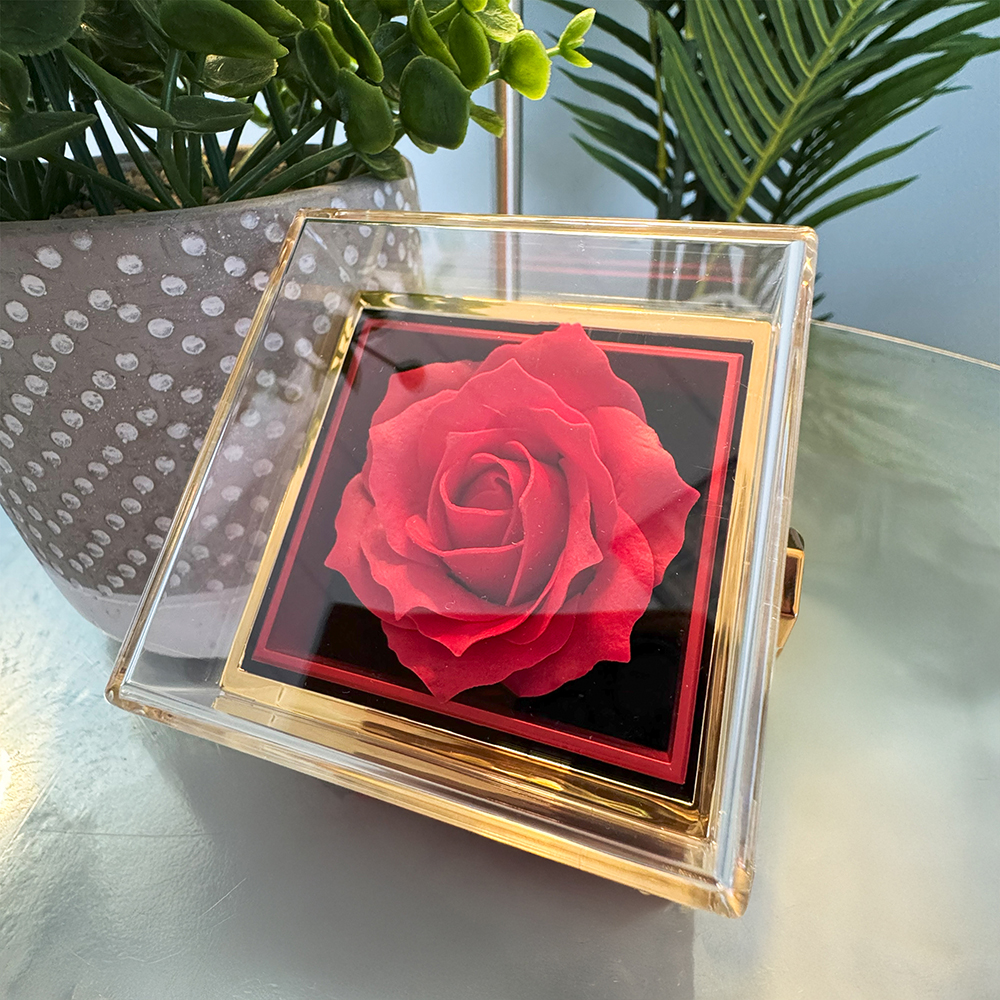 - Luxurious box with preserved red rose
